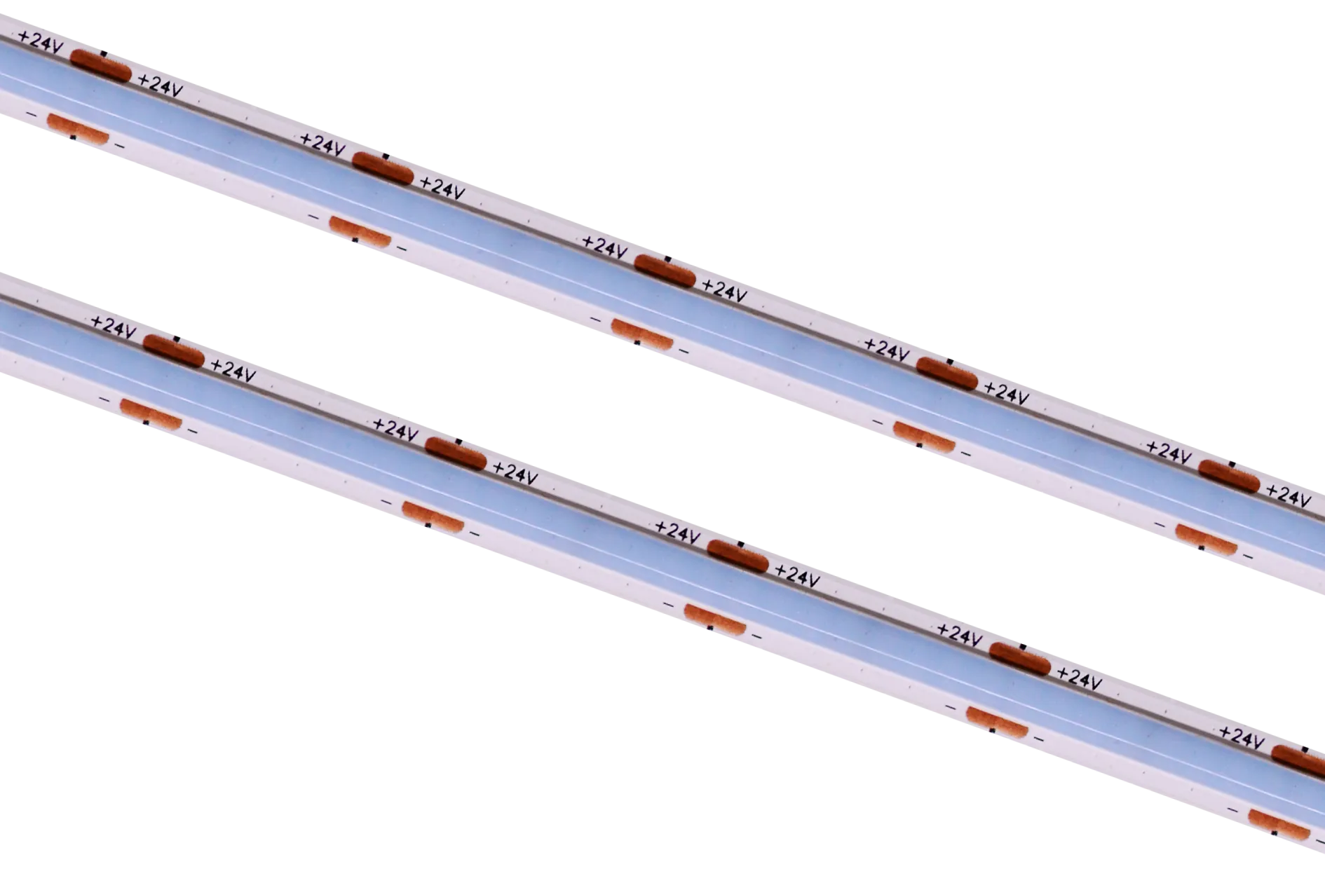 Taśmy LED to elastyczne źródła światła do zastosowań dekoracyjnych i funkcjonalnych. Oferujemy pełne portfolio napięć 12V, 24V i 48V, warianty barw i sterowania (MONO, CCT, RGB, RGBW, RGBCCT) oraz technologie wykonania: COB / WCOB / CSP / SMD. Dostępne stopnie szczelności IP20, IP66, IP68 pozwalają pracować we wnętrzach i na zewnątrz. Wybrane modele osiągają do 220 lm/W i wysoki CRI Ra>95. Dostępne są wąskie PCB (4–12 mm), krótkie odcinki cięcia oraz taśmy cyfrowe SPI.